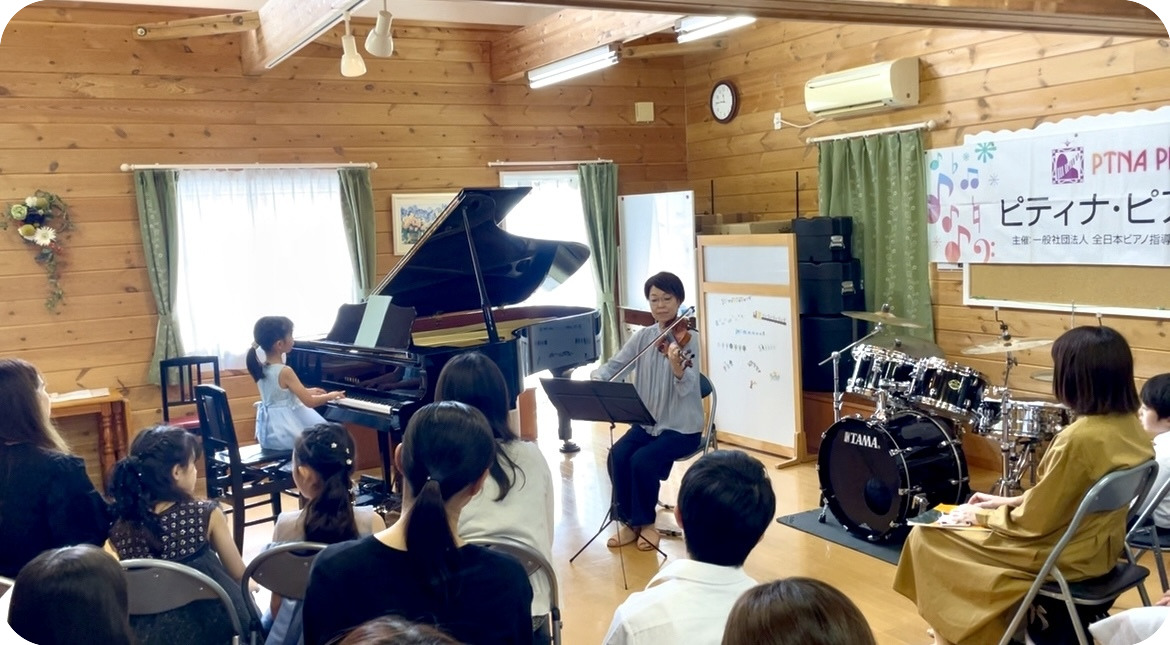 9月28日(日)、アーデン音楽館にて「ピティナ・ピアノステップ つくば9月地区」を開催しました。今回はサロン型ステップとして行われ、ピアノソロはもちろん、バイオリンとピアノ、ドラムとピアノ、家族での連弾などアンサンブルの参加もあり、子どもから大人まで幅広い世代の方々が音楽を楽しむ一日となりました。