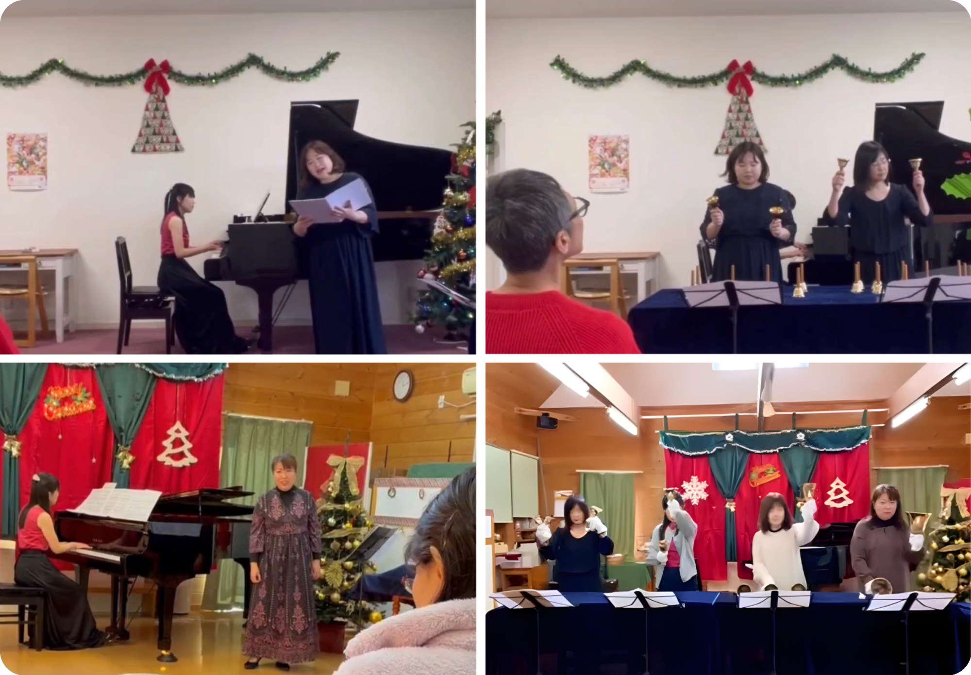 今回はクリスマスソングを中心に、他にも「クリスマス」を感じられるベルでの演奏も加え豊かなプログラムで音楽をお届けいたしました。
