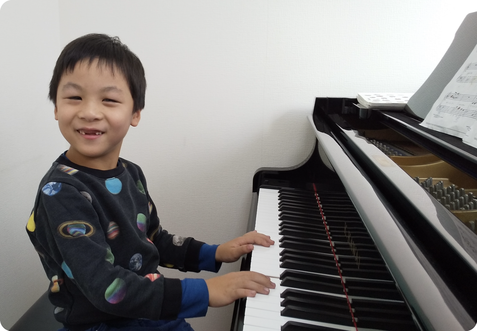 2)とにかく楽しいところ。時には家での練習をしぶることもありますが、ユーモアあふれる先生とお話しできるのが楽しいようで、いつも嬉しそうに教室に入っていく姿を見られて親としても安心感があります。
