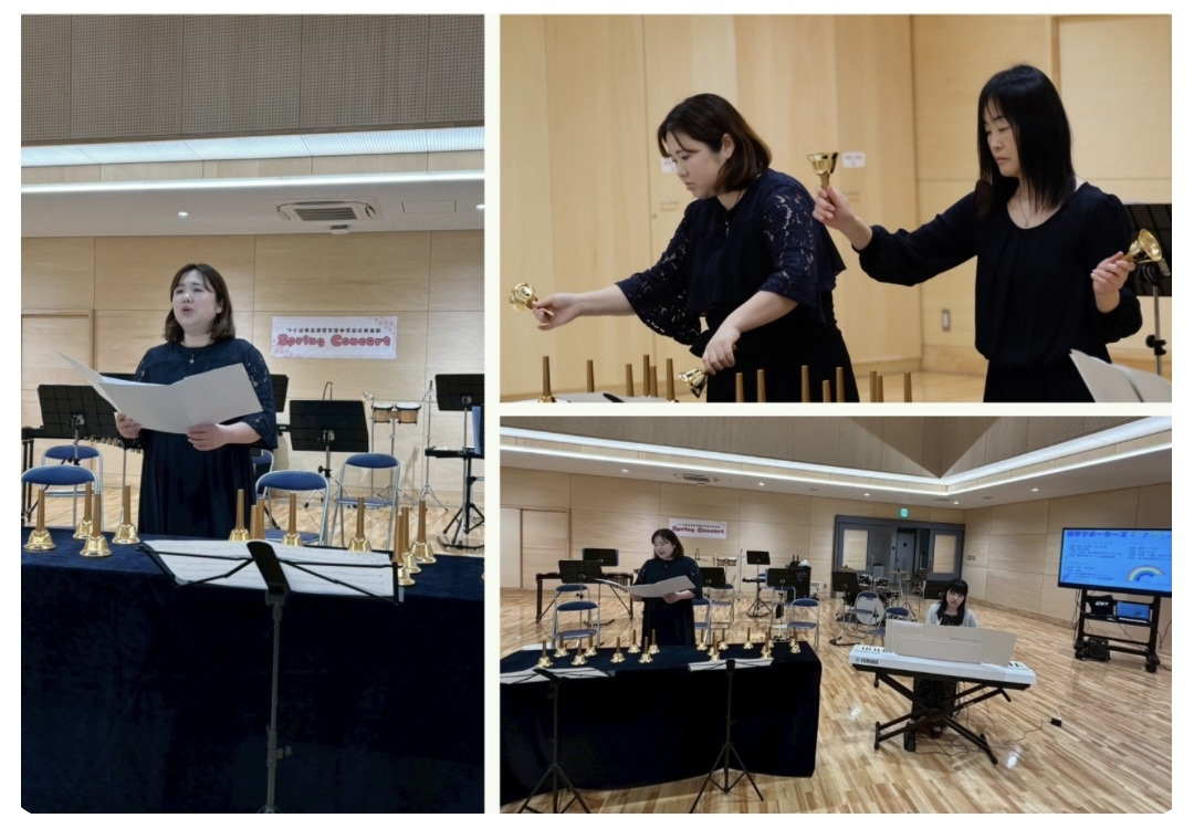 つくば市立研究学園中学吹奏楽部のスプリングコンサートにおいて塙先生、大西先生、岡田先生が歌とミュージックベルの演奏を行いました。